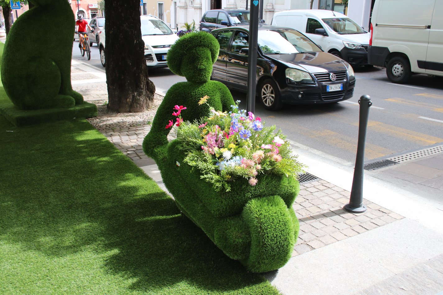 Wjeżdżając do Salò od razu zauważyliśmy ciekawe, zielone rzeźby. Okazało się, że są wykonane ze sztucznej trawy i stanowią wystawę jej producenta.