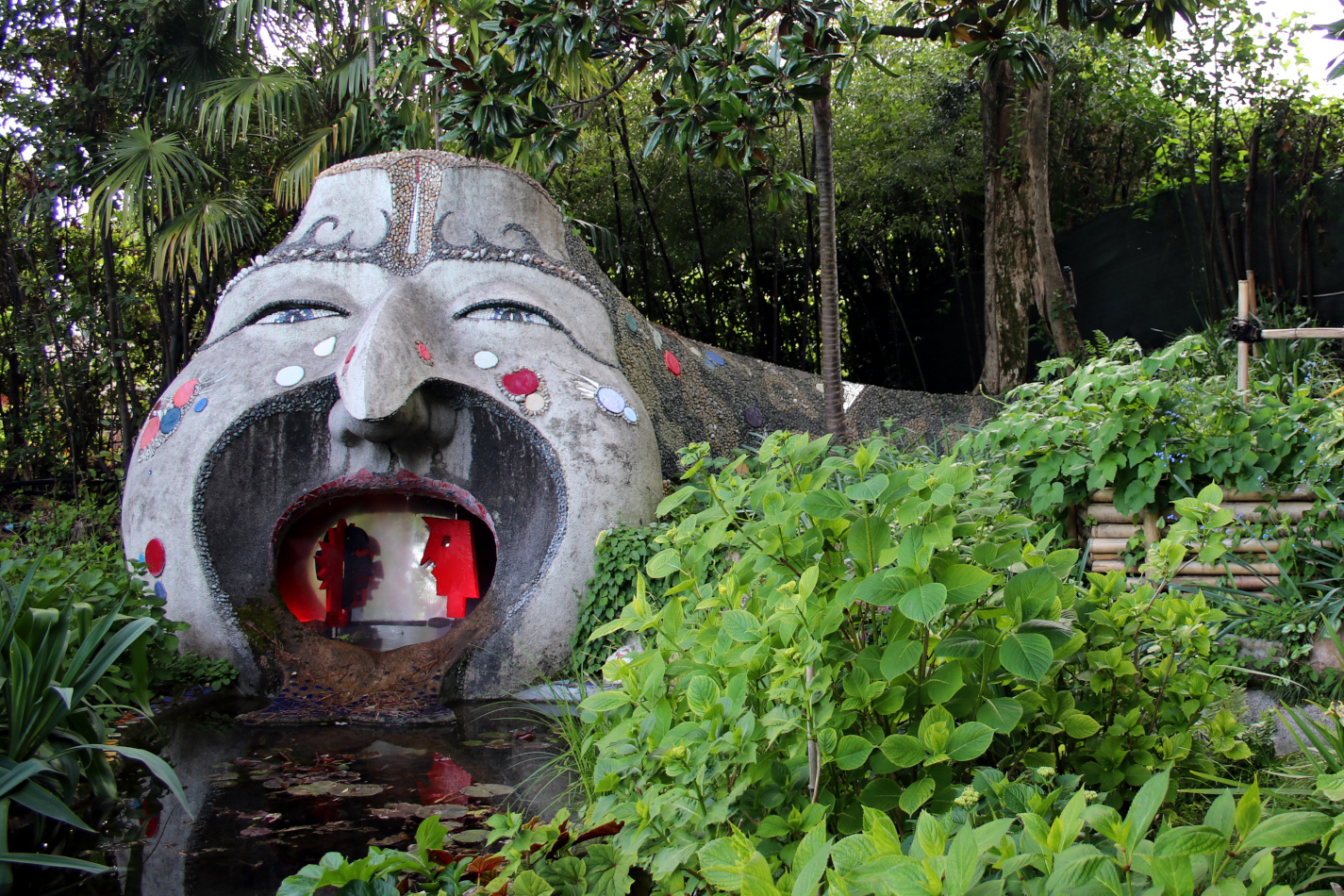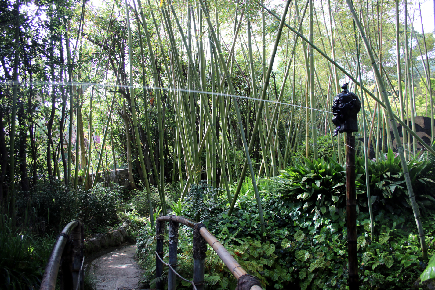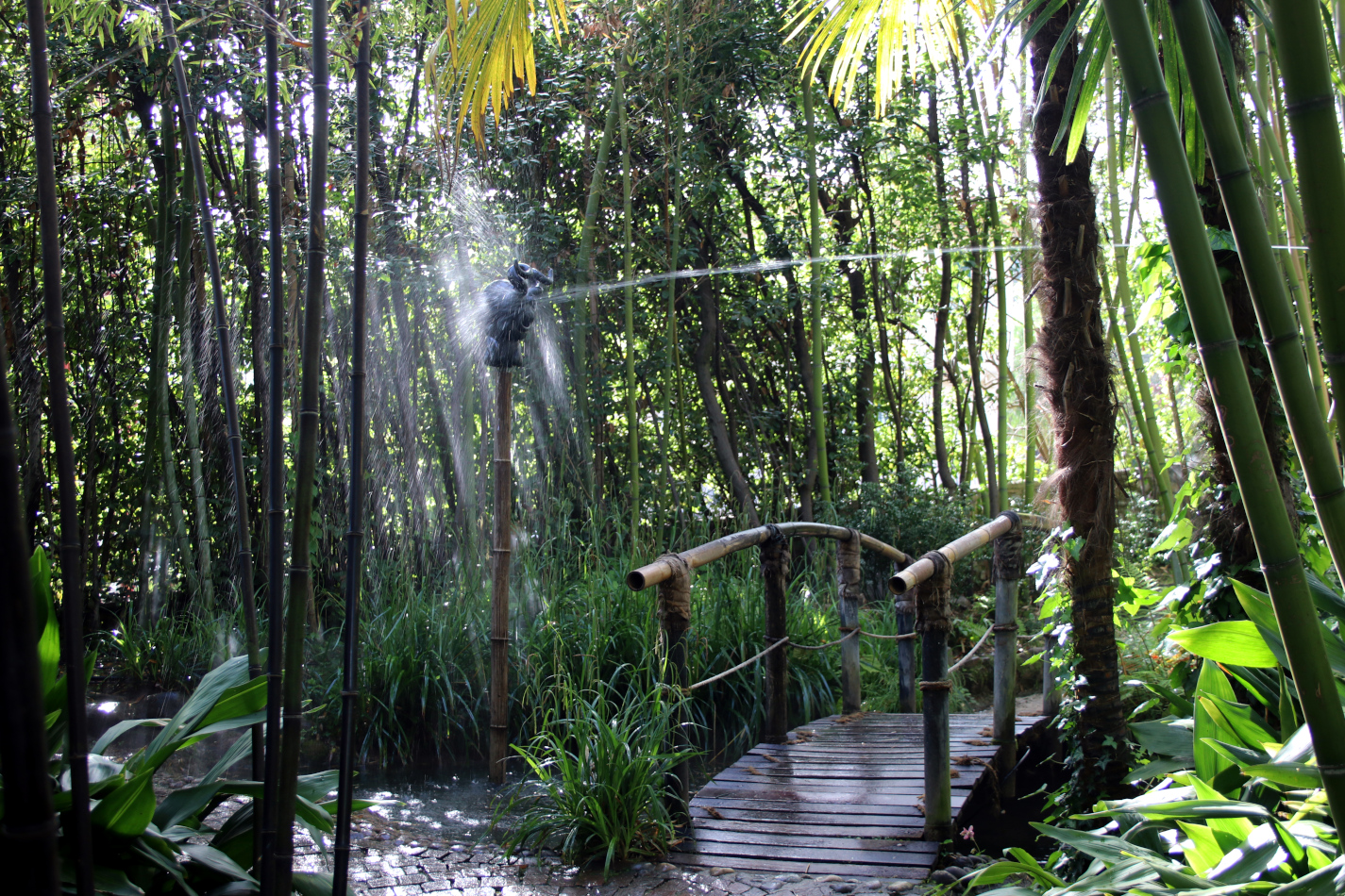 Najmłodszych na pewno zainteresuje instalacja w części japońskiej, gdzie stojące naprzeciwko siebie dwie głowy tryskają w siebie strumieniem wody z krótką przerwą, która pozwala przejść między nimi po mostku nad strumieniem.